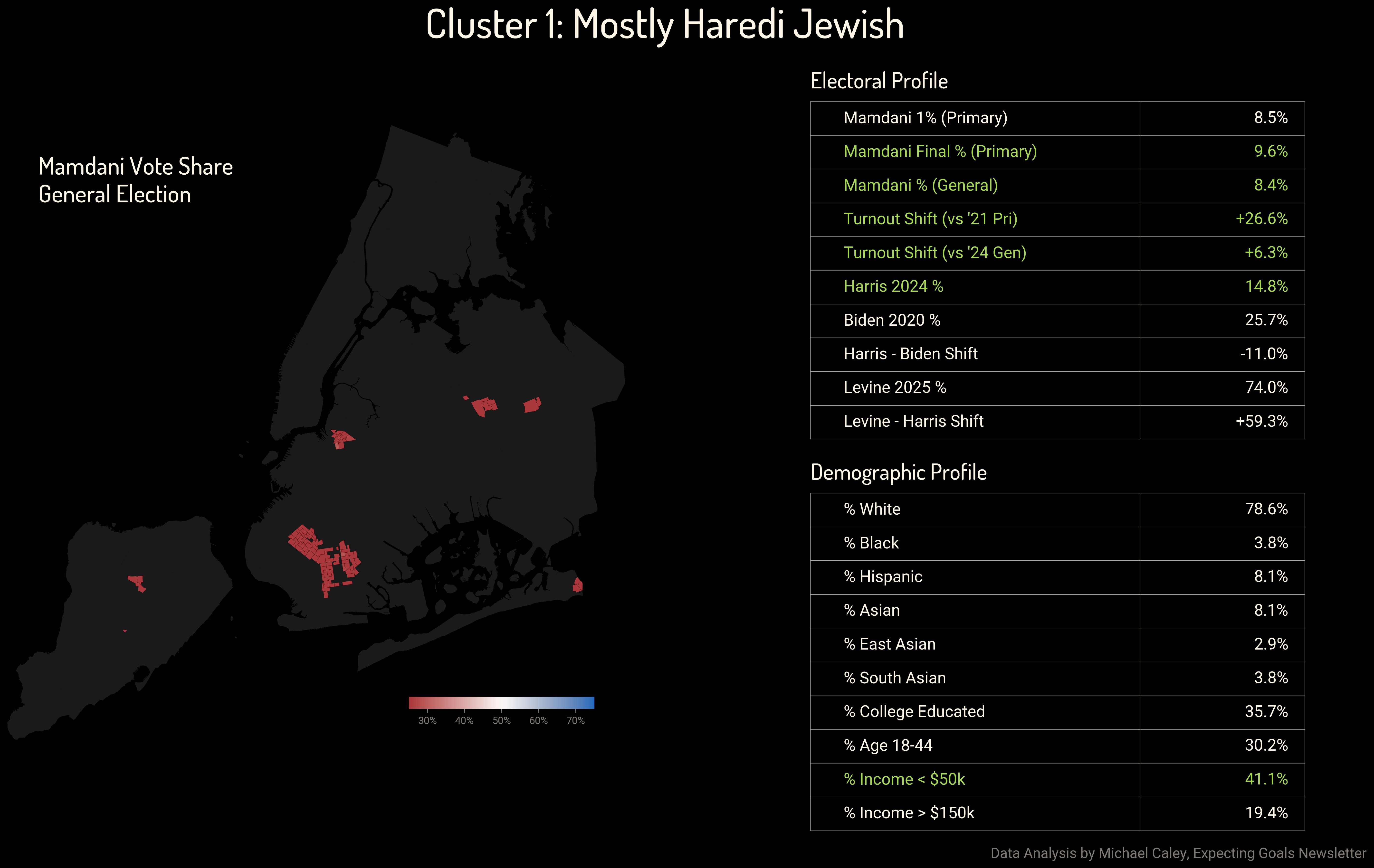 Those margins and turnout, however, were nothing like what Cuomo racked up among Haredi Jewish voters. Mamdani won under 10 percent of the vote in these areas and turnout even increased from the 2024 general election.